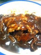出来上がったオムライスのソース代わりにハッシュドビーフをかけて。。。